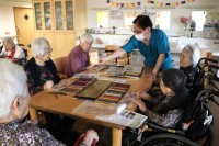 今月の季節のハンドメイド教室は、優しい明りが灯る『ランプ』を作りました。(明るさがわかりずらくて申し訳ございません(-_-;))スタッフがランプシェードに下絵を書き写し、ご入居者様に色を付けていただきまし...
