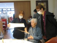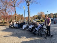 2便目です。コーヒーを飲みながら鑑賞しました。天気も最高~職員も車椅子を押しながら紅葉狩りを楽しみました!!紅葉の葉っぱを拾い渡しています。