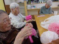 皆さまにフロアの飾りを手作りで作って頂いています。細かい作業なので、コツコツを一生懸命作成下さいました。完成した飾りを見て喜んでいました。