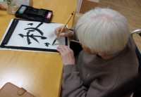 皆様に筆をとってもらい好きな字を書いてもらいました。とてもきれいな字を書いてくださいました。最後にとても個性のある習字がありましたので、載せさせて頂きます。ありがとうございました。