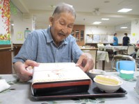 今日のお昼ご飯は敬老会特別メニュー✨「いつもと雰囲気が違うね…!」と皆さまワクワクしながらオープン!!美味しそうな天ぷらに煮物…そしてデザート♥付き!!\いただきます😊/「ケーキまで付いていて幸せだぁ~...