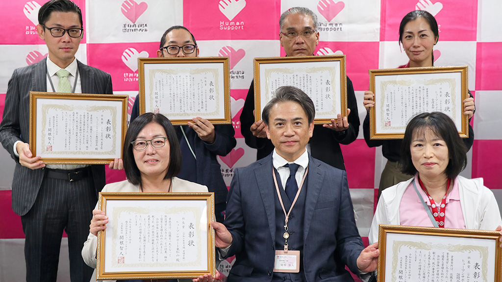 業務改善への工夫やチーム力の向上、組織への貢献など、施設単位での取り組みが評価され、介護付有料老人ホーム部門からは「ヒューマンサポート春日部中央」「ヒューマンサポート東松山」「ヒューマンサポート春日部」の3施設、デイサービスセンター部門からは「ヒューマンサポート春日部デイサービスセンター」、居宅・グループホーム・訪問部門からは「ヒューマンサポート幸手訪問介護事業所」、特別賞として「管理本部経理課」が選出され、それぞれ表彰されました。
