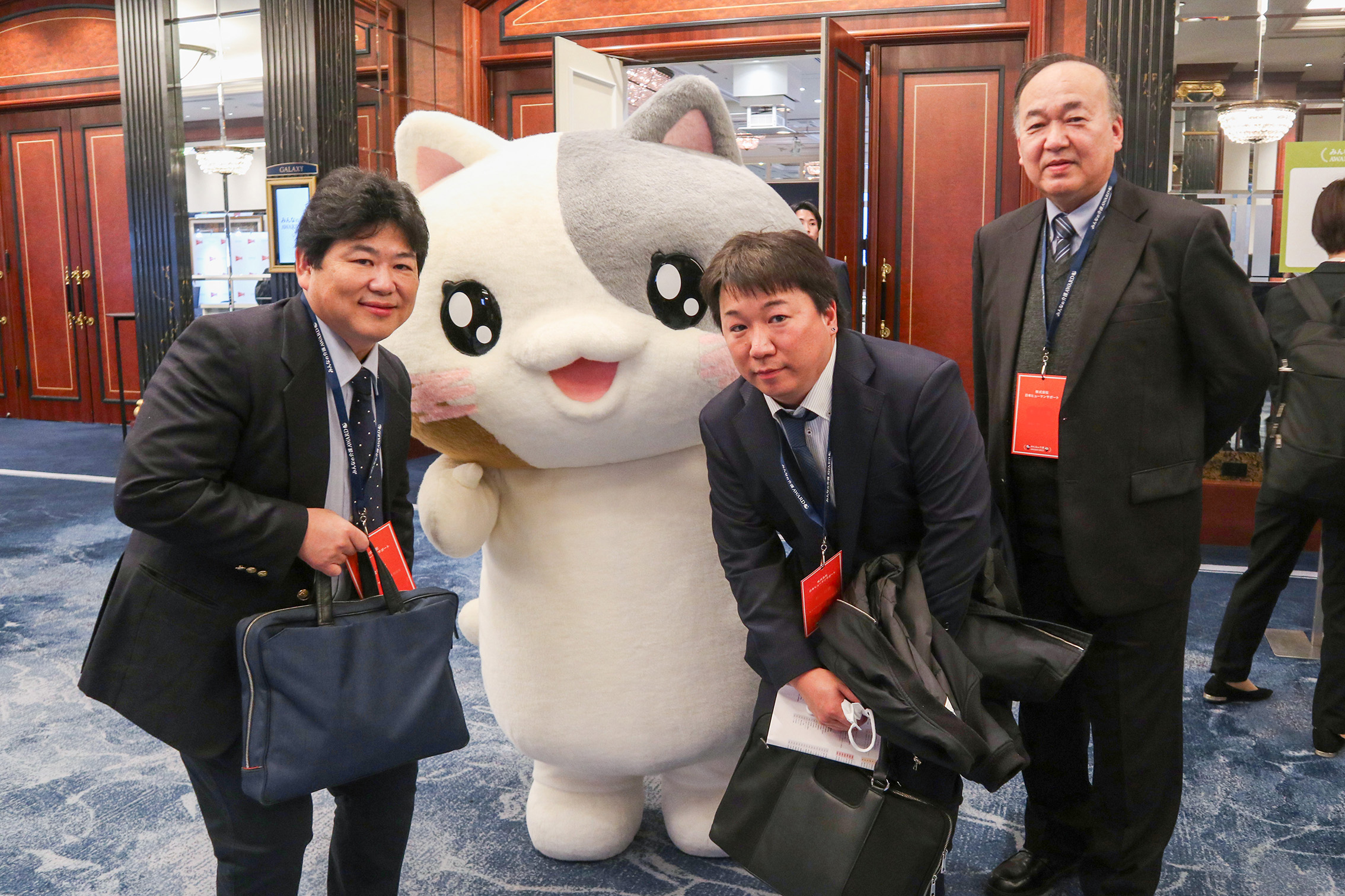 写真左より ヒューマンサポート守谷施設長・みんなの介護マスコットキャラクターうめちゃん・ヒューマンサポート古河施設長・千葉茨城エリア エリアマネージャー